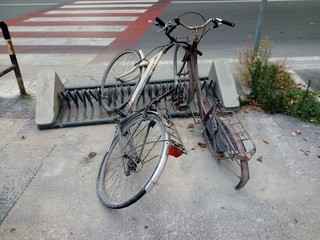 Le biciclette, come si può notare dalle foto, si trovano sulla rastrelliera dedicata, sono sicuramente abbandonate ed una è anche senza una ruota. Sarebbe opportuno che il Comune intervenisse per la loro rimozione e per evitare una brutta immagine per Sanremo.