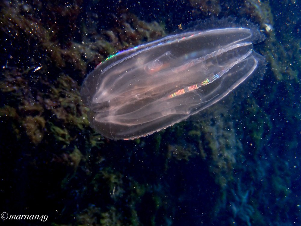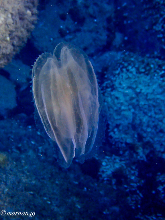 "Ecco che cosa ho visto nel mare antistante Cervo...E' appena passata l'invasione delle meduse Pelagia Noctiluca di cui le ho scritto una settimana fa, ed è un bene dal momento che quella è una delle specie tra le più urticanti del Mediterraneo ed evidentemente portate in qualche altro lido dalle correnti... oggi in giro non se ne vedono più ... Oggi però ho incrociato quest'altro esemplare (singolo per ora) di Mnemiopsis Leidyi, comunemente chiamate "meduse mangia pesci"...Si tratta di un fenomeno del tutto nuovo e/o non segnalato finora sulle nostre spiagge".