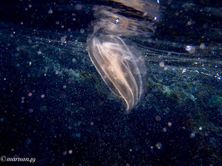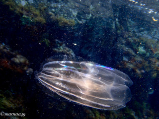 "Ecco che cosa ho visto nel mare antistante Cervo...E' appena passata l'invasione delle meduse Pelagia Noctiluca di cui le ho scritto una settimana fa, ed è un bene dal momento che quella è una delle specie tra le più urticanti del Mediterraneo ed evidentemente portate in qualche altro lido dalle correnti... oggi in giro non se ne vedono più ... Oggi però ho incrociato quest'altro esemplare (singolo per ora) di Mnemiopsis Leidyi, comunemente chiamate "meduse mangia pesci"...Si tratta di un fenomeno del tutto nuovo e/o non segnalato finora sulle nostre spiagge".