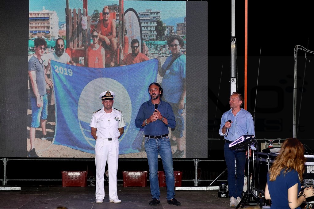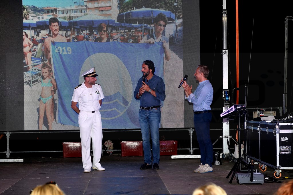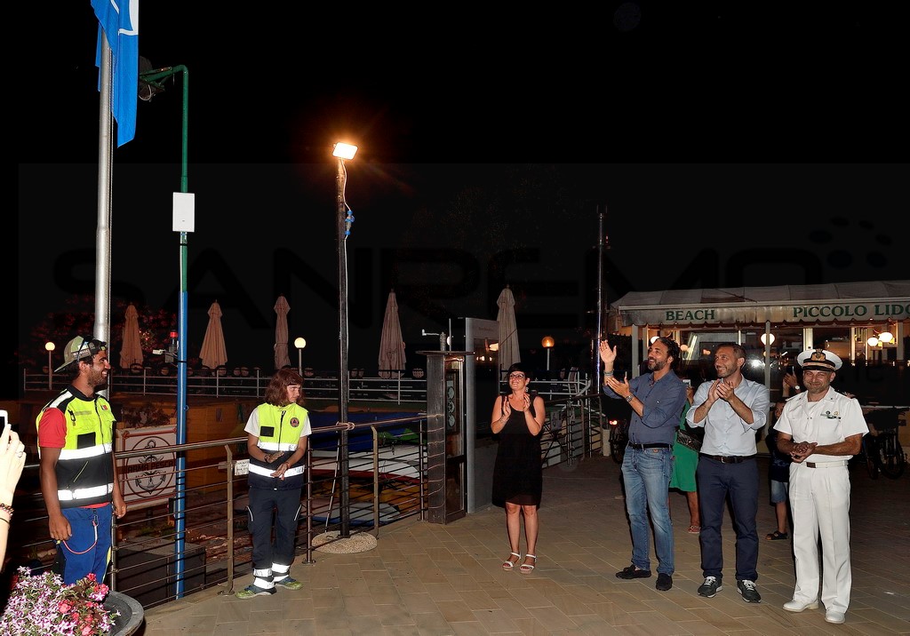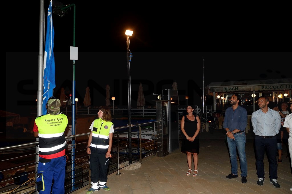 Grande festa ieri sera in piazza Chierotti ad Arma di Taggia, per la cerimonia di innalzamento della Bandiera Blu 2019.