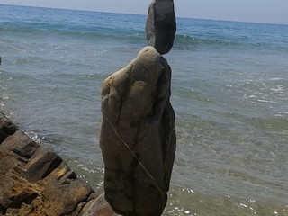 Basta questo e un po’ do inventiva per rendere la spiaggia a Levante della città dei fiori ancor più interessante. E’ stato Giorgio Bonetti, di Bergamo, a ‘posare’ i sassi che hanno creato una serie di immagini suggestive.