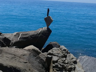 Un’arte particolare, quella presente da alcune ore nella zona dei ‘Tre Ponti’ a Sanremo. Qualche sasso presente sulla battigia e lo sfondo della città dei fiori.