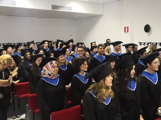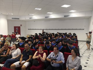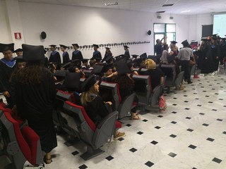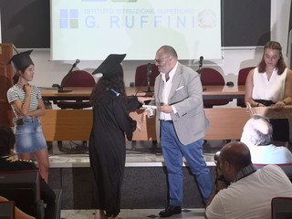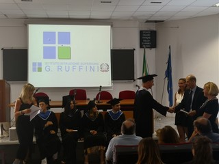Si è svolta questa mattina, in un aula magna del presidio universitario imperiese gremita, l'ormai tipica cerimonia del lancio del tocco per i diplomati dell'Istituto Ruffini e tecnico turistico Hanbury. Presenti i vertici scolastici, compreso il provveditore Luca Lenti, Giorgio Giuffra e il presidente Domenico Abbo in rappresentanza della Provincia di Imperia e la dottoressa Benedetta De Filippi per la Questura di Imperia.