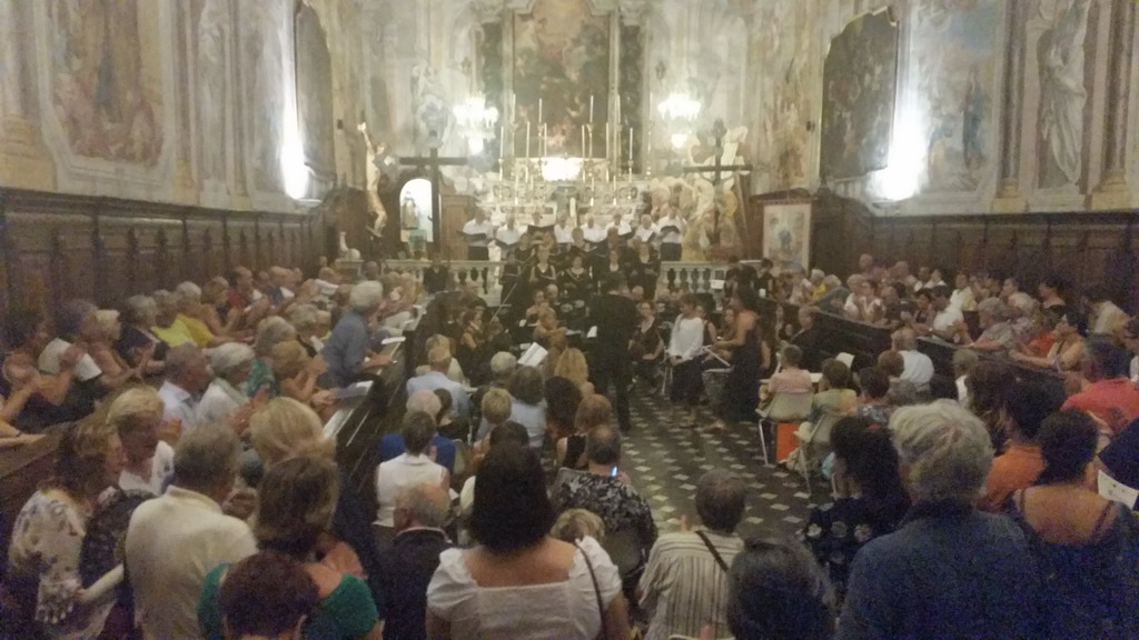 Al termine delle applauditissime esecuzioni il pubblico è stato accompagnato per una passeggiata tra i palazzi storici del Parasio dal corteo del comitato di ‘Sotto Tina’, per l’occasione in raffinati abiti rinascimentali. Al termine della passeggiata durante la quale sono stati letti passi di cronache di epoche lontane, il pubblico si è radunato in piazza Pagliari dove al termine della gradita ed apprezzata esibizione dei figuranti di ‘Sotto Tina’, il coro ha concluso la serata proponendo brani polifonici profani rinascimentali terminando con ‘Veggiu Paraxiu’, composta dal corista Angelo Sampietro, aggiungendo un tocco di affascinante nostalgia. E per finire un bische ha coinvolti ex coristi ed ex direttori presenti.