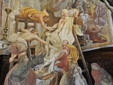 Dopo questo speciale inizio, è il corredo decorativo dell’Oratorio a diventare protagonista. Le quattro pareti dell’Oratorio di San Pietro Apostolo di Porto Maurizio sono interamente affrescate. Neanche un centimetro è rimasto vuoto. Le opere, realizzate alla fine del Settecento da Francesco Carrega con i figli Tommaso e Maurizio, raffigurano “La gloria di San Pietro”, “I Padri della Chiesa”, “La Crocifissione di San Pietro”, “La punizione di Saffira”, “La visione di San Paolo”, “La caduta di Simon Mago di fronte ai SS. Pietro e Paolo”. Inoltre, dei Carrega è rimasto un raro cartelame, arredo che riporta a una pratica in uso nel passato, per cui agli artisti si richiedeva la pittura di scene su supporti fragili come il legno e la carta pressata per addobbare l’edificio in particolari occasioni del calendario cattolico. Opere d’arte effimera che conservano la bellezza vincendo l’usura del tempo e sono eccezionalmente arrivate fino a noi.
