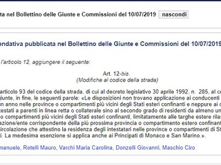 "Sono usciti i testi degli emendamenti al decreto sicurezza bis su problema dei veicoli con targa straniera condotti dai frontalieri italiani. Purtroppo mi duole vedere che i testi presentati dalla maggioranza non risolvono il problema o per lo meno lo risolvono solo in determinati casi". Ad affermarlo è Roberto Parodi dell'Associazione FAI frontalieri che spiega: "Se un veicolo è intestato a una ditta individuale, maggioranza dei casi, quindi a persona fisica, non può essere condotta da un residente in Italia".