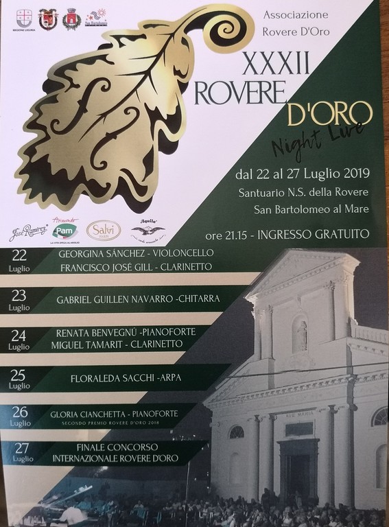 Un evento di portata internazionale che vedrà esibirsi a San Bartolomeo al Mare oltre cento partecipanti da tutto il mondo Europa, Argentina, Cina, per contendersi l'ambito premio. Al concorso Rovere d'Oro verranno, come di consueto, affiancate la gara dei 'Giovani Talenti' e le tipiche esibizioni serali sul sagrato del santuario di Nostra Signora della Rovere da lunedì 22 a sabato 27 luglio con la grande serata finale e la nomina del nuovo vincitore del premio.