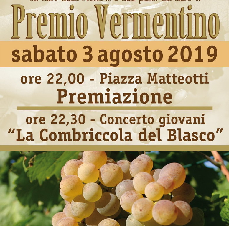 Dalle 19, nel centro storico, saranno presenti delle band musicali e Borgo Sapore vi farà assaporare gustosi piatti tipici. Sempre dalle 19, in Piazza Quaglia ci sarà la presentazione e la degustazione dei vermentini in concorso in compagnia dei sommelier dell' A.I.S e della F.I.S.A.R. A seguire alle 21,30 in Piazza Matteotti ci sarà la premiazione le ditte vincitrici della Giuria Esperti e della Giuria Popolare e Memorial Barbara e alle 22 inizierà il Concerto Giovani con il gruppo musicale La Combriccola del Blasco. Dalle 18,30 all'una servizio di bus navetta gratuito con partenza da Diano Marina (Via Cesare Battisti, passaggio a livello).