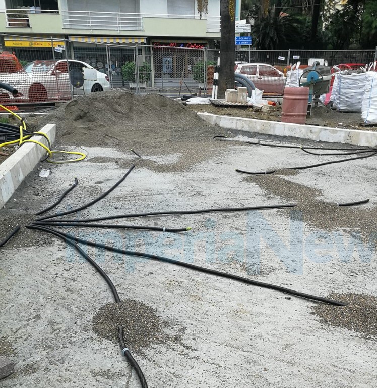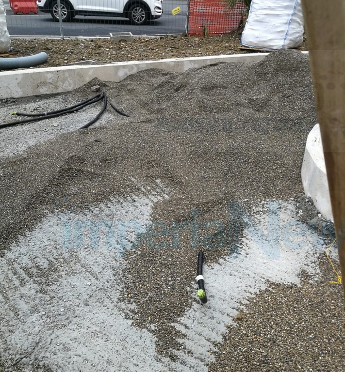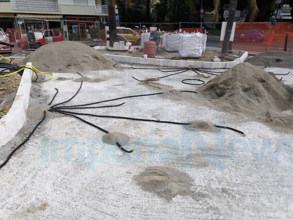 Procede speditamente il lavoro per la realizzazione del fondo dell'area pedonale a monte della rotonda della Foce, a Sanremo. La posa del cemento è stato il primo passo dell'area prevista dal progetto dell'architetto Simone Perrone per integrare l'infrastruttura viaria con il passaggio pedonale in un quartiere molto popoloso e a due passi da un parco giochi per bambini molto frequentato.