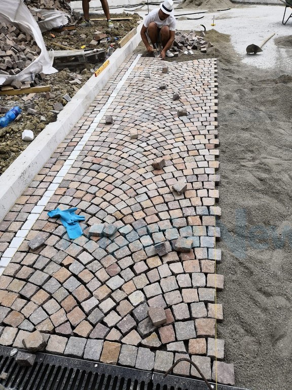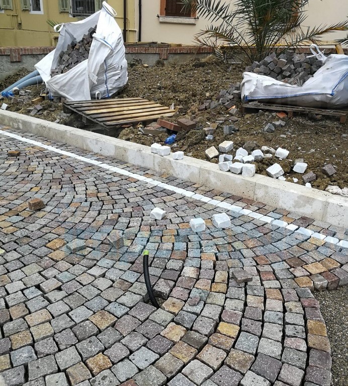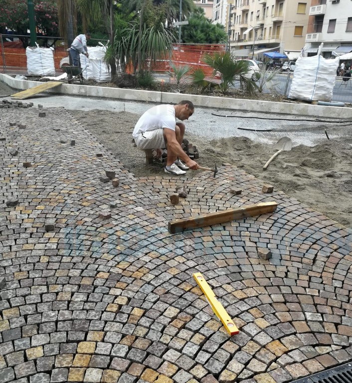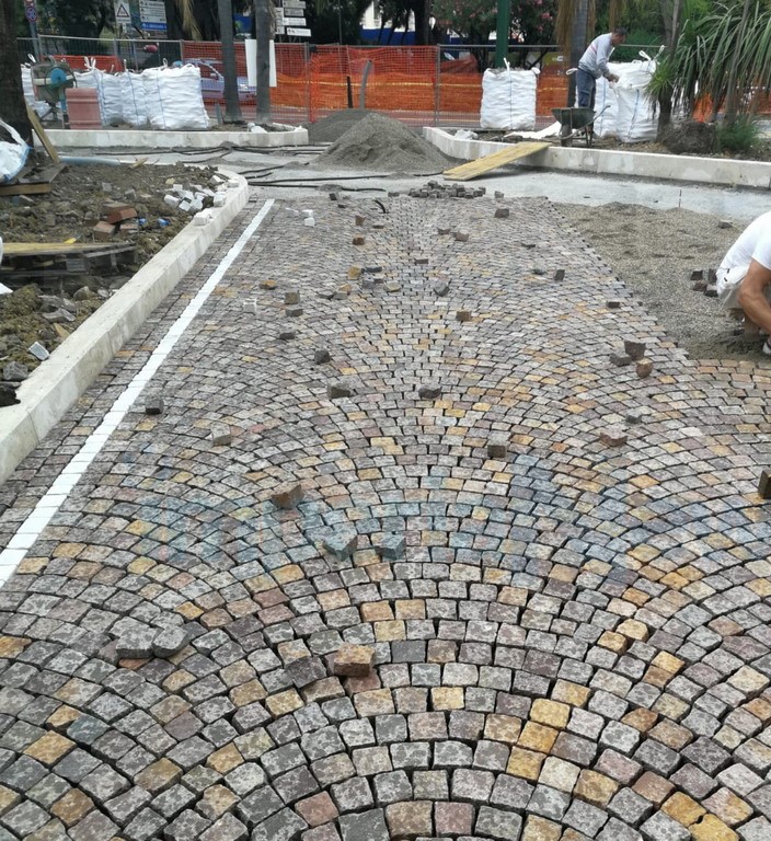 Negli ultimi giorni è stato posato il porfido, che arrederà i giardini nella zona a Nord mentre i lavori andranno avanti sia per la zona su strada che sulle aree pedonali a corredo. Come era stato anticipato nelle scorse settimane, i lavori poi proseguiranno anche sulla sede stradale, dove è prevista la costruzione della rotonda vera e propria che sarà
