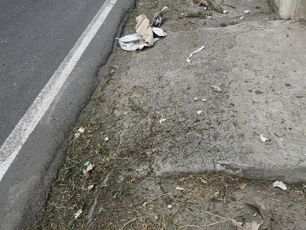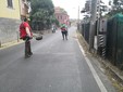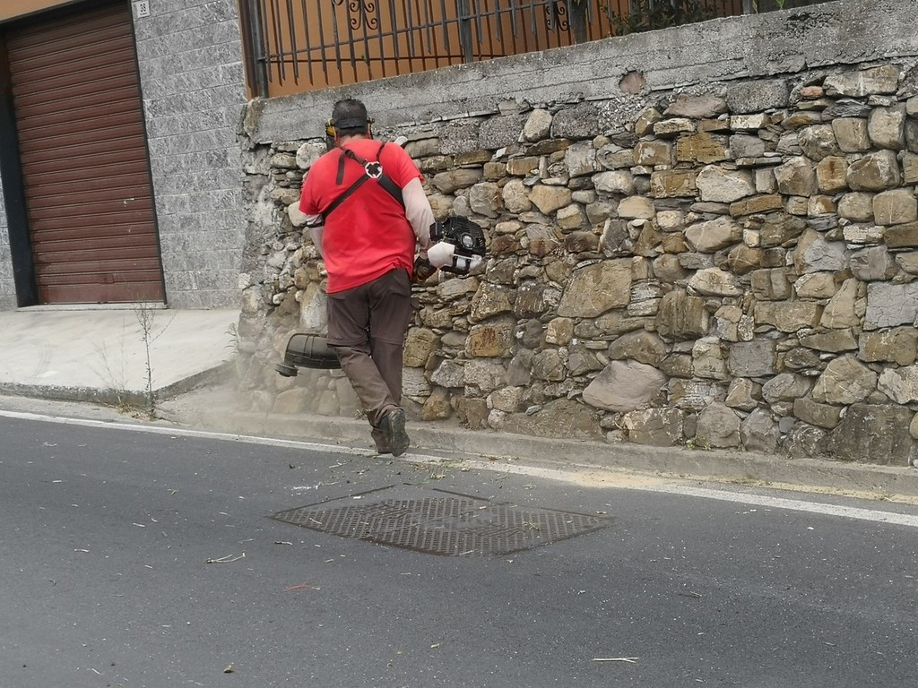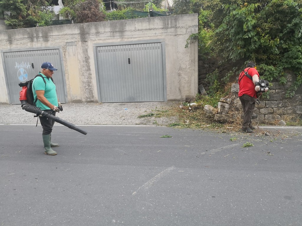 Dalle prime ore del pomeriggio un operatore ecologico sta provvedendo al taglio delle erbacce lungo l'arteria principale della zona portorina con Gagliano a 'soffiare' via il reciso.