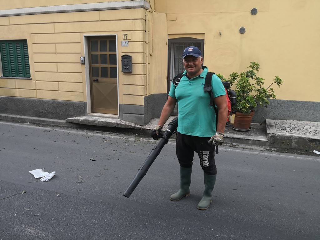 Via la giacca per stivali e soffiatore in azione, non è un operaio del comune d'Imperia ma l'assessore Antonio Gagliano. Il delegato a Viabilità e Polizia Municipale ha infatti cambiato vesti per un giorno aiutando in maniera fattiva nelle operazioni di sfalcio e pulizia in corso in località Caramagna.