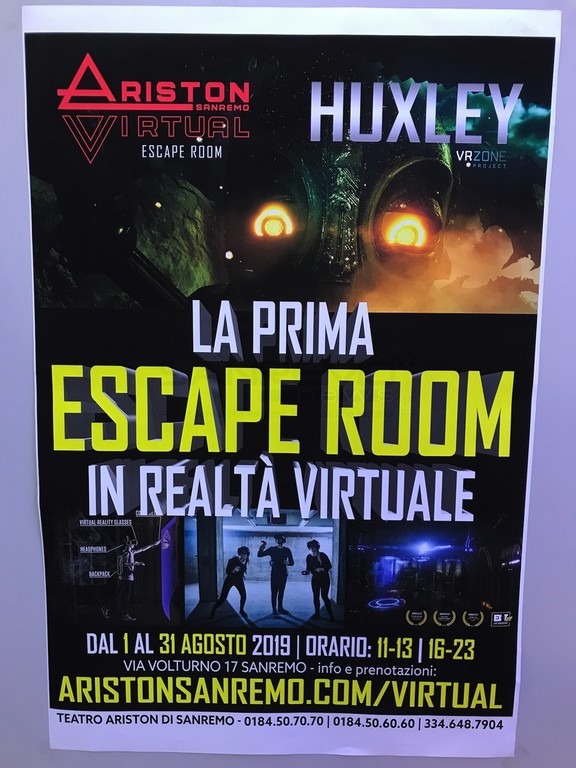 Il futuro dell’intrattenimento digitale arriva a Sanremo. Da oggi al 31 agosto, in via Volturno 17, Ariston propone, in collaborazione con ‘Huxley’, la prima esperienza di ‘escape room’ virtuale.