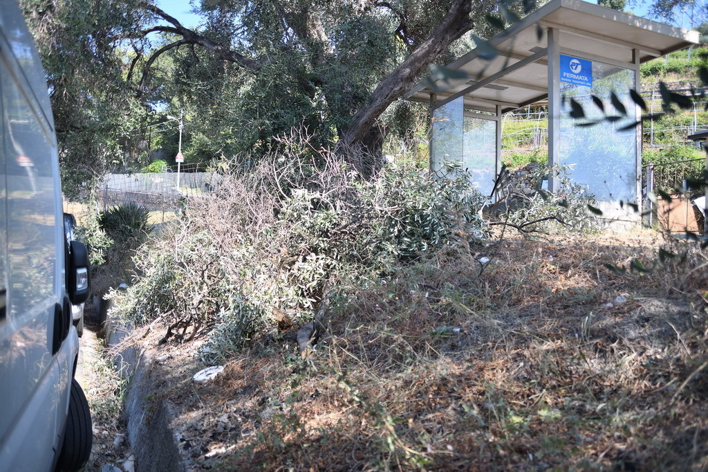 Si spezza un ramo di olivo sulla strada che porta al campo golf di Sanremo e, fortunatamente, distrugge solo lo specchietto retrovisore di un furgone.