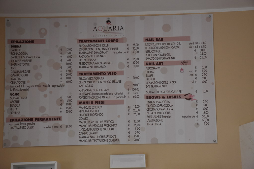 Il centro estetico ‘Aquaria’ è aperto dal lunedì al venerdì dalle 10 alle 18.30 ed al sabato dalle 10 alle 13.
