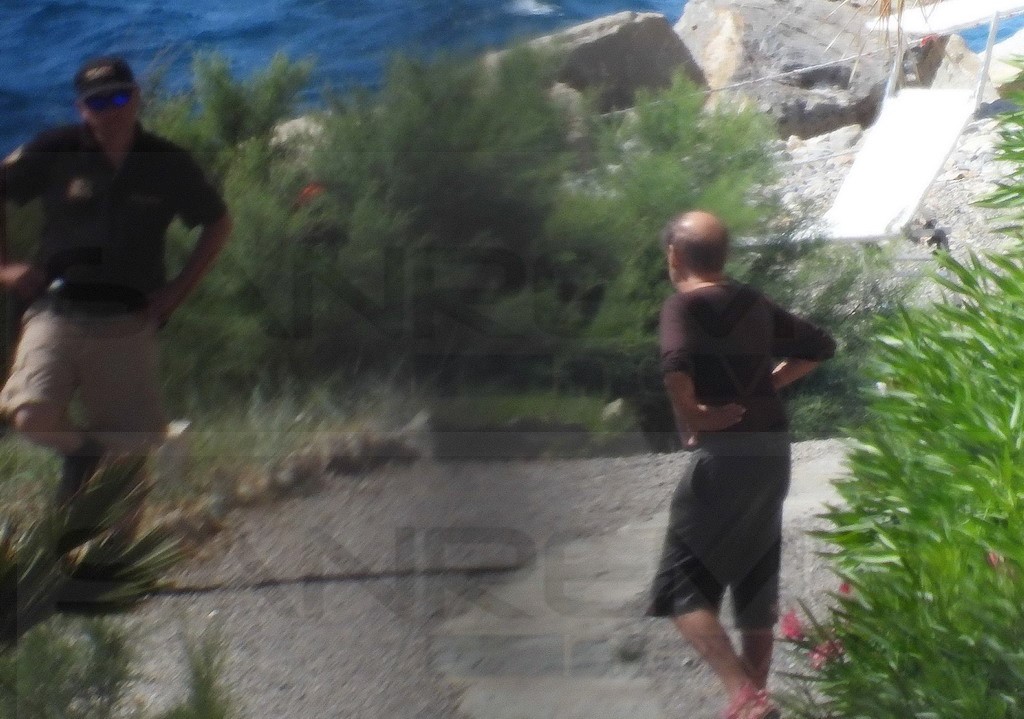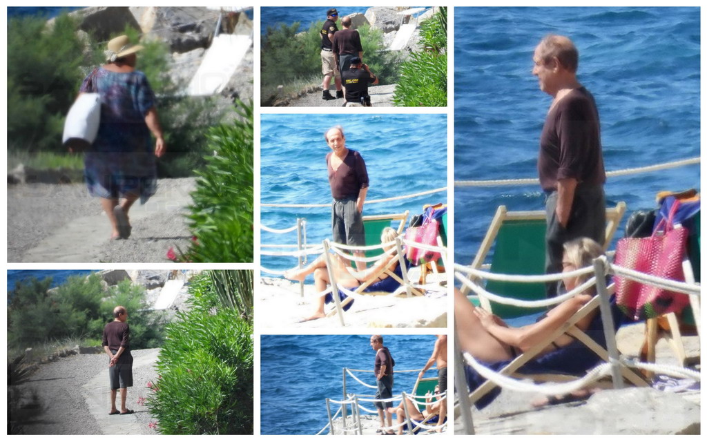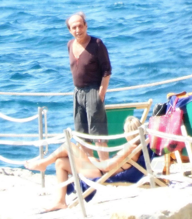 E, altrettanto classico, l’assalto con i ‘cannoni’ e le macchine fotografiche dei fotografi per inquadrare il ‘supermolleggiato’ in qualche suo momento di relax. Con lui c’è anche la moglie, Claudia Mori, anche lei sempre presente per le vacante di agosto.