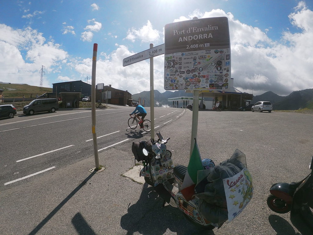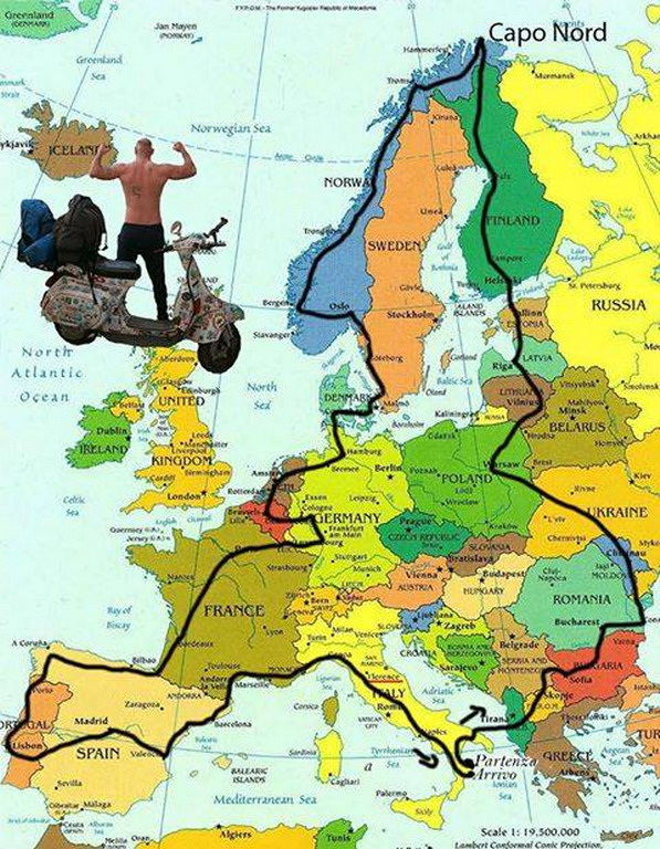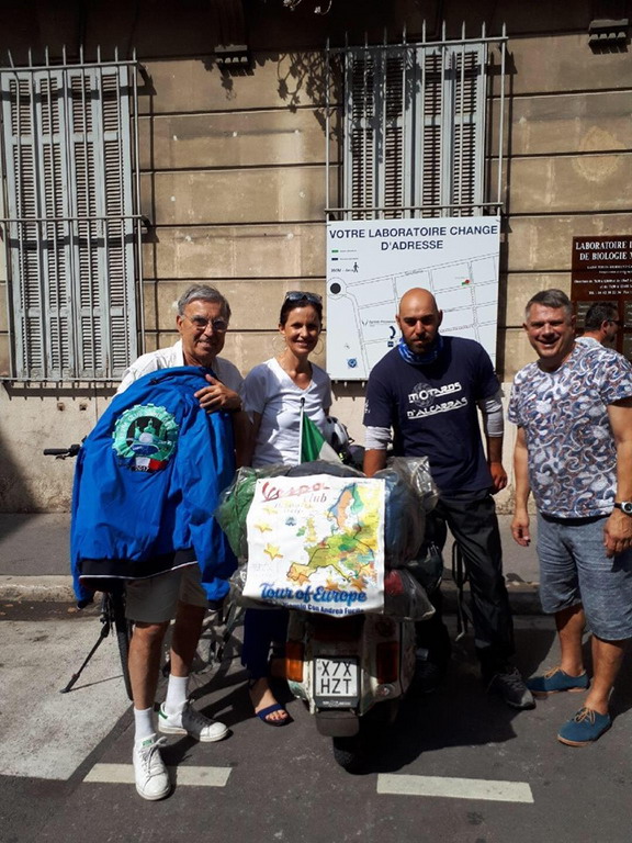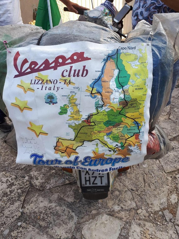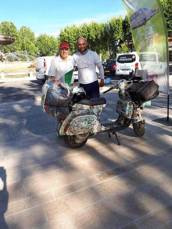 L’uomo, giornalista e scrittore, è partito il 10 maggio da Calo Pezzati, paese dove vive in Calabria. Ieri è arrivato ad Airole in quello che è stato l’85° giorno di viaggio che, inizialmente lo ha visto raggiungere la Puglia e, quindi, in nave l’Albania. Poi ha attraversato: Bulgaria, Romani, Ungheria, Polonia, Finlandia e Norvegia dove ha toccato Capo Nord. E’ quindi iniziata la ‘discesa’ dove ha attraversato: Svezia, Danimarca, Germania, Benelux, Francia, Spagna, Portofallo, Francia, per arrivare ieri in Italia, dove si è fermato, ospite del Vespa Club di Airole.