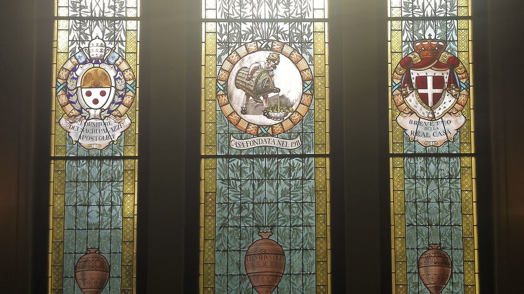 Gli interni: l'ingresso del Museo dell'Olivo di Imperia è impreziosito da una splendida vetrata colorata disegnata dal famoso illustratore Silvio Talman. Al centro domina il logo secolare della ditta: la bimba, ovviamente ligure, che versa olio dalla damigiana. Sembra di entrare nella cattedrale dell'olivo... La collezione è organizzata in ben diciotto spazi tematici. Le raffinate tecniche espositive, la multimedialità, l'attenzione al comfort del visitatore rendono il museo Carli estremamente piacevole da vivere. Vi consiglio assolutamente di noleggiare le audioguide fornite alla reception. Pronti per cominciare?
