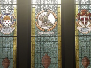 Gli interni: l'ingresso del Museo dell'Olivo di Imperia è impreziosito da una splendida vetrata colorata disegnata dal famoso illustratore Silvio Talman. Al centro domina il logo secolare della ditta: la bimba, ovviamente ligure, che versa olio dalla damigiana. Sembra di entrare nella cattedrale dell'olivo... La collezione è organizzata in ben diciotto spazi tematici. Le raffinate tecniche espositive, la multimedialità, l'attenzione al comfort del visitatore rendono il museo Carli estremamente piacevole da vivere. Vi consiglio assolutamente di noleggiare le audioguide fornite alla reception. Pronti per cominciare?