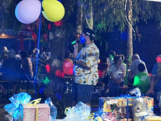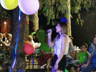 Dopo la parte conviviale e iniziato lo svago vero e proprio, il karaoke, con tanto di giuria che con i pareri discordanti su ogni performance ha animato le serata. Nel campetto un gonfiabile ha dato modo ai bambini di avere uno spazio tutto loro e anche questa scelta del parroco è stata azzeccata. È stata veramente una serata di serenità e gioia, un modo semplice per dire “Ci siamo... siamo comunità”.