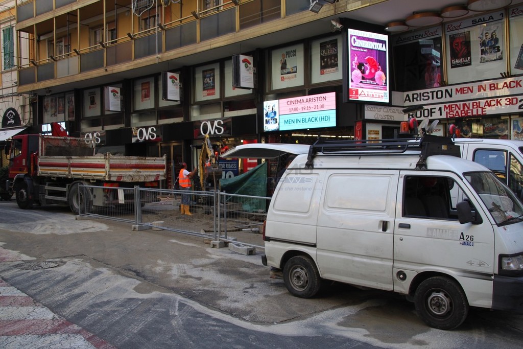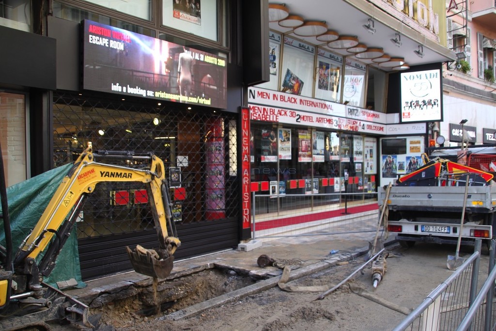 Sanremo: nuovo guasto alle tubature in via Matteotti, anche il bar dell'Ariston resta senz'acqua (Foto e Video)