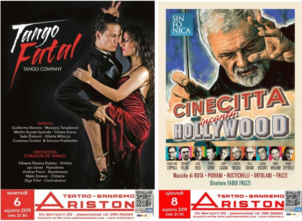 Il secondo spettacolo sarà giovedì 8 agosto, alle ore 21.30, con l’Orchestra Sinfonica di Sanremo, diretta dal Maestro Fabio Frizzi. Sarà presentato “Cinecittà ammalia Hollywood", un concerto dedicato alle grandi colonne sonore con musiche di Piovani, Rustichelli, Ortolani, Frizzi