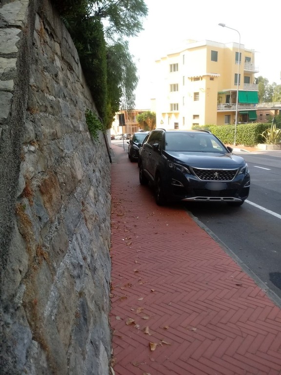 “Questa è una parte di via Cavour ad Ospedaletti e come sempre le macchine occupano il marciapiedi mi chiedo se da noi è in vigore una modifica al codice della strada. A parte le zone a pagamento sui marciapiedi il parcheggio è libero?