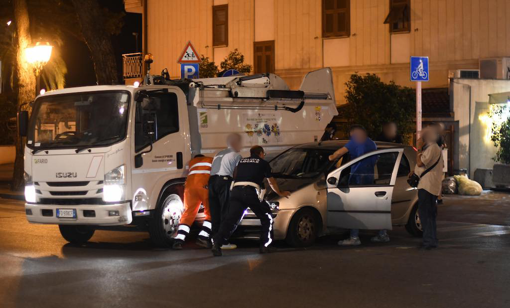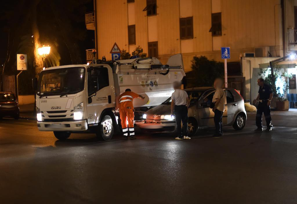 Sanremo: auto si scontra con un furgoncino per la raccolta della spazzatura (Foto)
