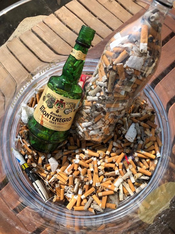 Per chi non avesse i dati, i mozziconi di sigaretta competono con la plastica per il primato di agenti contaminatori dei mari e degli oceani. Sono fatti di acetato di cellulosa, difficilmente biodegradabile; e per di più hanno accumulato, e rilasciano nell’ambiente, quelle sostanze irritanti, tossiche, anche carcinogeniche che li hanno impregnati durante la combustione delle sigarette. È stato calcolato che in Italia ogni anno vengono immessi in ambiente 72 miliardi di mozziconi, con tutto il loro carico inquinante. Le piccole soddisfazioni sono dunque l’aver fatto qualcosa che aiuta l’ambiente, e l’averlo fatto insieme a 8 gruppi internazionali che includevano anche americani e francesi, impegnati ieri nelle stesse attività.