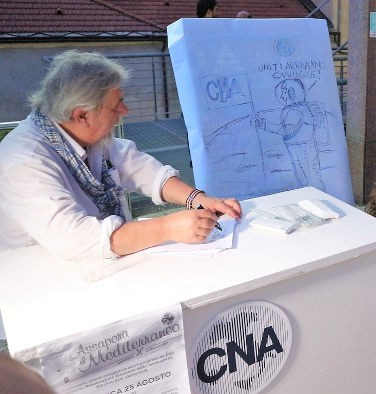Il cartoonist sarà presente al Mercato annonario di Sanremo dalle ore 9.30 su iniziativa degli operatori del mercato annonario in collaborazione con la CNA di Imperia, realizzando vignette in diretta. I disegni si ispireranno ai temi della gastronomia e verranno ritratti clienti e operatori del mercato.