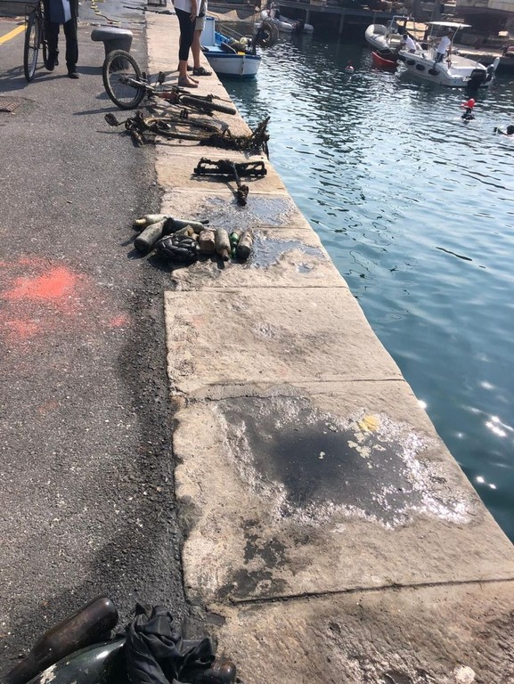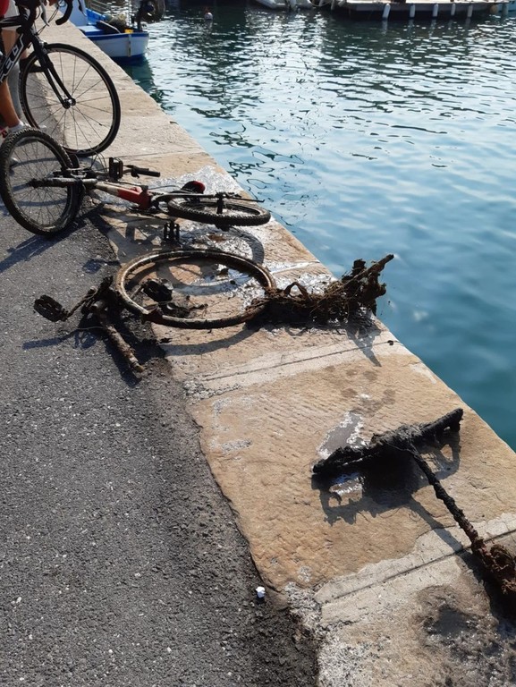 Un passeggino, un carrello e una bicicletta, sono alcuni dei rifiuti trovati questa mattina sui fondali del molo di Oneglia, nell’iniziativa di pulizia organizzata dall’Asno per rendere il mare imperiese, che da quest’anno ha la bandiera blu, più pulito. Negli anni però non sono mancati i gesti di incivili che hanno gettato in mare i propri rifiuti, come testimoniano i ritrovamenti di oggi.