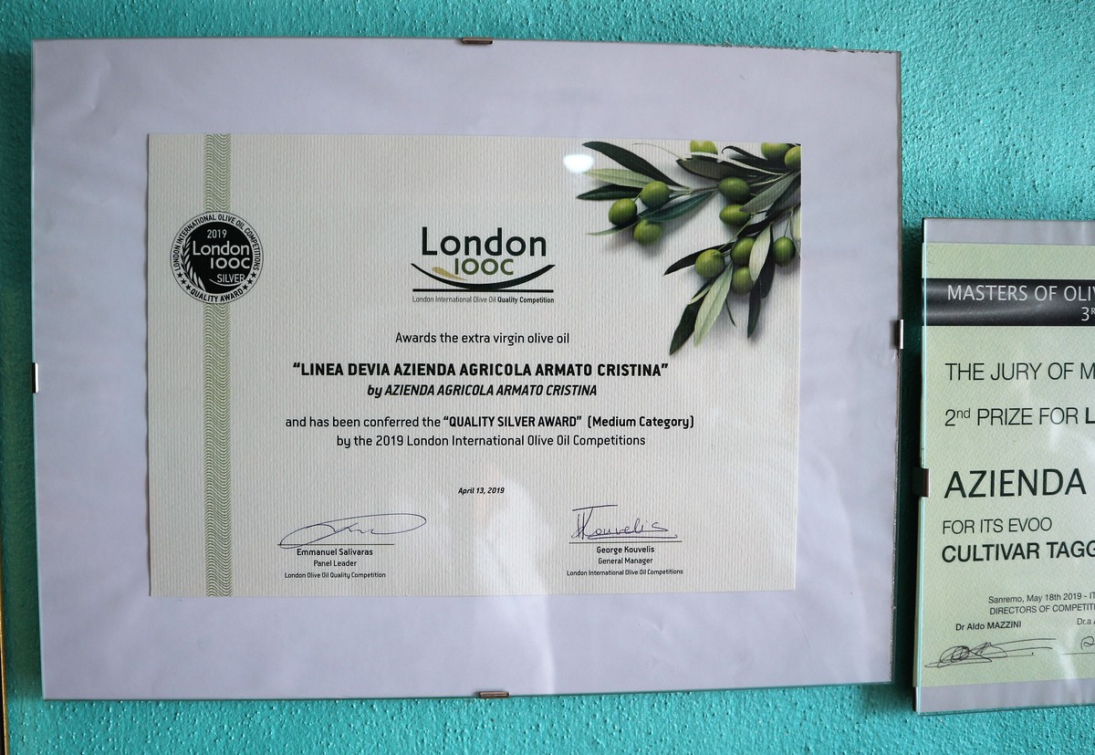 L’azienda, che ha ottenuto prestigiosi riconoscimenti anche internazionali e che sono esposti nella sala, dove si trova il punto vendita, presenta una produzione con un giusto connubio tra tradizione e innovazione, un lavoro portato avanti con fatica e sudore, ma soprattutto con una grande rispetto per la maestosa pianta dell'Ulivo e del suo territorio.