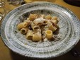 Molto gustosi gli antipasti a cominciare dai salumi tipici laziali, strepitoso il prosciutto crudo tagliato al coltello abbinato a un pecorino di quelli a forma alta da urlo.