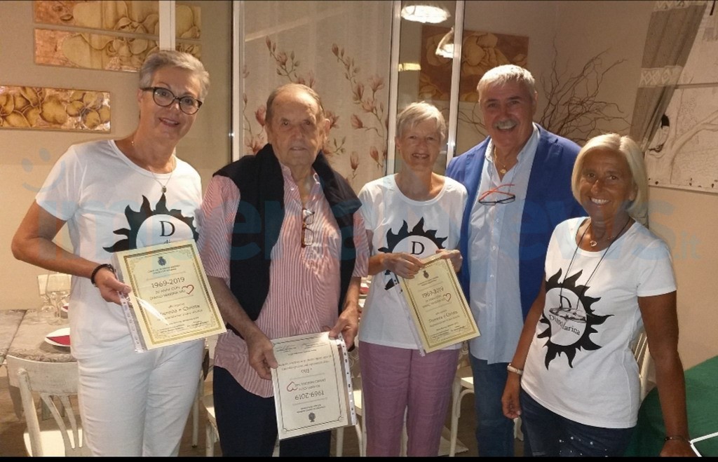 Erano presenti per l'occasione alcuni agenti della polizia locale che parlano correttamente il tedesco, la comandante Bozzano, il vice Franco Mistretta ed il sindaco della città, Giacomo Chiappori, che ha voluto consegnare a Theresia e a Christa una pergamena per aver avuto ‘Per 50 anni Diano Marina nel cuore’. Un'altra pergamena è stata consegnata dalla comandante al vigile Elio ‘Per ringraziarlo di questa bella storia di amicizia e turismo’. La serata si è conclusa in allegria e al gruppo si è aggiunto anche il saluto del noto cantante Alberto Fortis.
