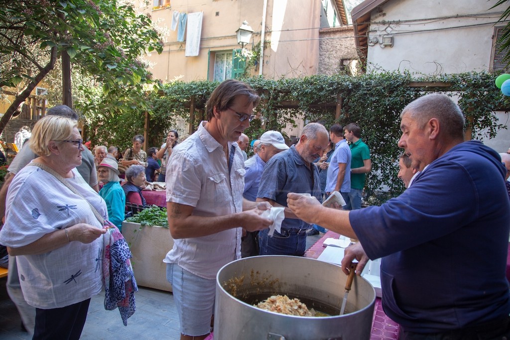 Nonostante questo aspetto c’è un elemento che accompagna da sempre questa giornata che cade puntuale ad ogni terza domenica di settembre: l’atmosfera che si vive in paese. Camminando per i carruggi di questo borgo è normale ritrovarsi ad annusare nell’aria il profumo verace di questa pietanza che sa di famiglia e amore per le tradizioni del territorio. In questa giornata ogni angolo del paese è in festa. Le cantine dei privati vengono aperte ad amici e parenti ed è ‘il’ giorno dedicato alla condivisione ed allo stare in compagnia, uniti in questa ricetta.