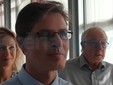 Lara Servetti, Presidente del Consorzio Porto Peschereccio: "Oggi abbiamo voluto ringraziare il Comune di Friedrichshafen, che è gemellato con la città di Imperia, perchè ha donato 5000 euro per il recupero dell'Info-point, pesantemente danneggiato dalla mareggiata dell'anno scorso. Grazie a questo aiuto finanziario siamo riusciti a rifare il tetto, una parete laterale e la coibentazione. I pescatori di Oneglia hanno voluto ringraziare la delegazione del Comune di Friedrichshafen, con la consegna di una targa".