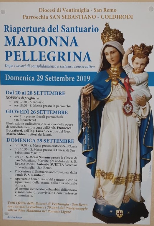 “Siamo riusciti a terminare questi lavori grazie al contributo della CEI - afferma il parroco della Chiesa di San Sebastiano, Don Nicolas Tshituala - si tratta di un evento molto atteso da tutti perché questo è un Santuario di riferimento per il ponente ligure per la Madonna Pellegrina. Da ottobre, ogni domenica, alle 16, torneremo a celebrare la Messa nella piccola chiesa. Ringrazio il Vescovo Mons. Antonio Suetta, la curia e tutti i fedeli di Coldirodi”.