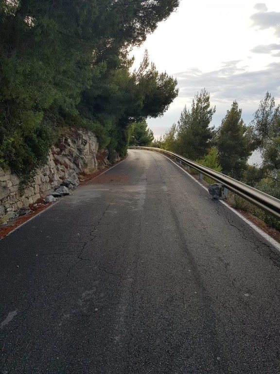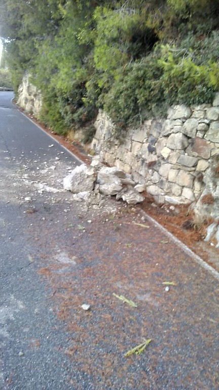 Intervento della Polizia Municipale di Ospedaletti questa mattina per rimuovere alcuni massi caduti sulla provinciale Ospedaletti - Coldirodi caduti probabilmente a seguito delle piogge di questa notte.