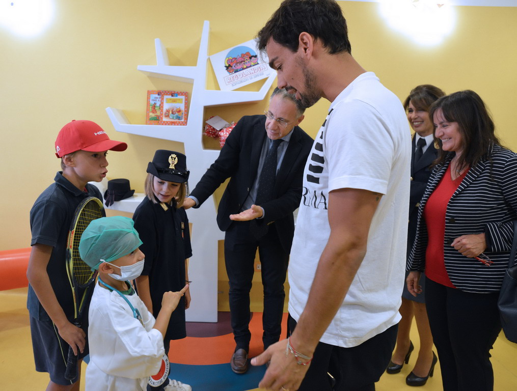 Nella ludoteca al 2° piano dell’Ospedale 'Gaslini' di Genova, alla presenza del questore della Provincia di Genova Vincenzo Ciarambino e del vicepresidente e assessore alla Sanità di Regione Liguria Sonia Viale, è stato inaugurato il ciclo di incontri e laboratori 'Regolandia', in occasione della visita del campione di tennis Fabio Fognini.