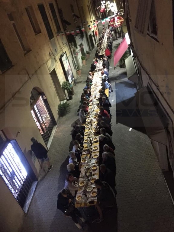 Via Nino Bixio è stata allestita per l’occasione e le associazioni hanno lavorato per preparare il menù che, alla modica cifra di 15 euro, ha proposto: spaghetti all’Amatriciana, porchetta e patate ed un dolce alla crema per chiudere la serata. La particolarità della cena è quella che, oltre ai volontari delle associazioni, si propongono come ‘camerieri’ anche il Sindaco Giorgio Giuffra, la Giunta ed i Consiglieri comunali, in totale spirito cameratesco per garantire un introito alle associazioni, che poi investono il tutto negli appuntamenti che vengono organizzati a Riva Ligure.