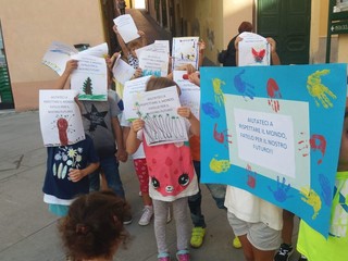 I bambini hanno preparato cartelli, disegni e striscioni e oggi, 27 settembre, sono scesi nella piazza di Santo Stefano per dire a tutti “Aiutateci a rispettare il mondo. Fatelo per il nostro futuro”.
