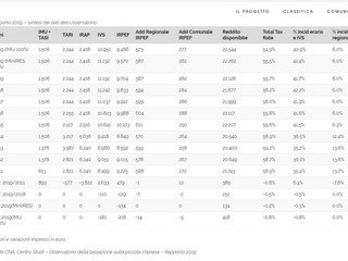 Il Rapporto analizza l’andamento della tassazione in 141 Comuni italiani, dal 2011 al 2018, con una proiezione per l’anno 2019. L’analisi si riferisce a tutti i capoluoghi di provincia e ad altri Comuni che presentano un’alta densità di popolazione e di piccole imprese, prendendo a campione una impresa manifatturiera rappresentativa del tessuto economico italiano: in particolare, una azienda con 4 operai ed un impiegato, con reddito d’impresa di 50.000 euro all’anno.