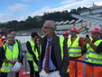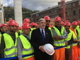 E' iniziata alle 10 la cerimonia che vede issare il primo impalcato del Ponte per Genova: 400 tonnellate sollevate a 50 metri da terra.