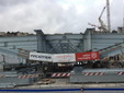 Si tratta di una struttura in acciaio lunga 50 metri e larga 26, che ricorda la carena di una nave. Per sollevarla occorreranno due gru e almeno due ore di lavoro: alle 10.11 l'inizio, accompagnato dal suono della sirena, delle operazioni di sollevamento.