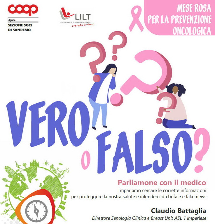 L’occasione per scoprire quali siano le comunicazioni attendibili te la da la LILT con “Vero o Falso? - parliamone con il medico”, conferenza per imparare a cercare le corrette informazioni utili a proteggerci da bufale e fake news. Relatore il Presidente LILT Dr. Claudio Battaglia. Questi gli appuntamenti: