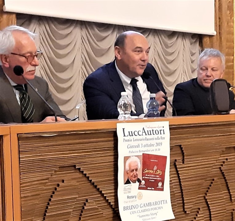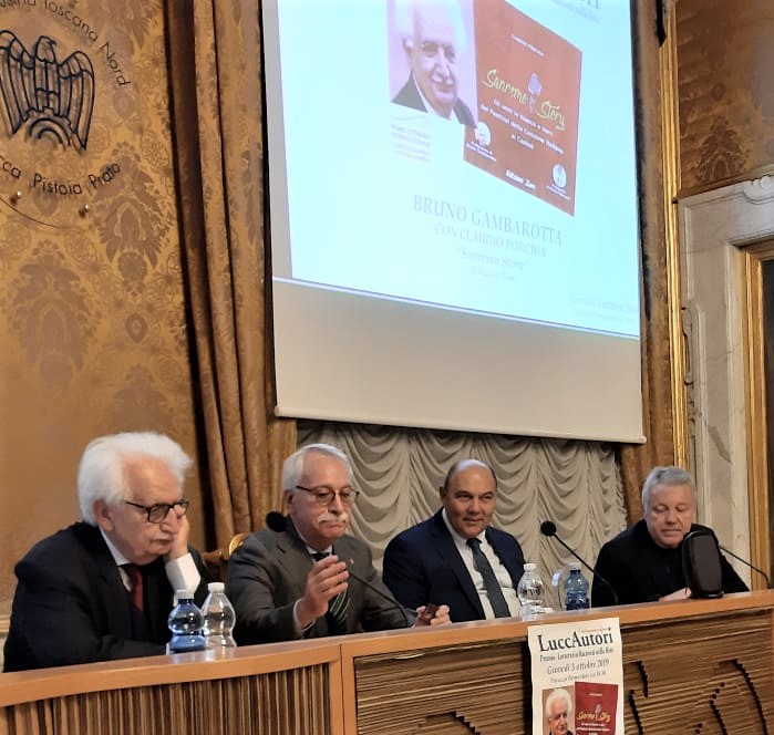 Demetrio Brandi, presidente di LuccAutori e del premio letterario Racconti nella Rete, ha invitato per questa edizione a Lucca anche Bruno Gambarotta e Claudio Porchia per la presentazione del libro “Sanremo Story: gli anni in bianco e nero del festival della canzone italiana”. Un interessante e doveroso omaggio ad una manifestazione che il prossimo anno festeggerà il traguardo della 70° edizione.