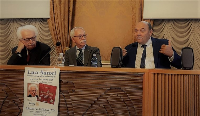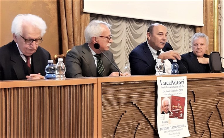 All’incontro sono intervenuti insieme a Demetrio Brandi, presidente di LuccAutori, Domenico Fortunato, presidente Rotary Club Lucca e il sindaco della città di Lucca, Alessandro Tambellini.