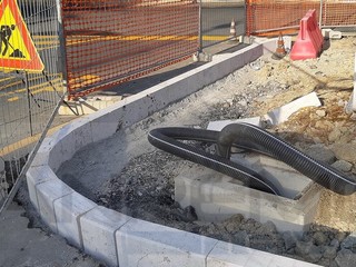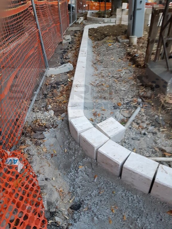 “In primo luogo ho visto fare l'allargamento della strada per dar posto alla rotonda ed il fondo dell'asfalto è costituito da solo 15 cm di ciotoli. Poi è iniziata la messa in opera delle bordure e mi è sembrato fossero solo appoggiate al calcestruzzo con tra l'altro poca stabilità, lasciando grandi spazi tra un blocco e l'altro, soprattutto nelle parti curve. Dopo una sosta è iniziata la posa e la costruzione delle aiuole a levante e la sorpresa più grande: non essendo cambiato il metodo di posa, è stata la larghezza dei blocchi a sorprendermi , molto più grandi di quelli posati nelle bordure a ponente. Mi sono subito chiesta quale sia la motivazione di questo cambiamento. Vorranno mica rifare le bordure già fatte ed adeguarle? No No... impossibile. Nei scorsi mesi scorsi ho visto parecchi interventi del Direttore Lavori a cui avete dato spazio ed in cui difendeva le scelte dell'Amministrazione e di se stesso. Ma può spiegare ad una cittadina quali sono i motivi delle lavorazioni applicate e la parvenza di precarietà che l'insieme da… avete visto la confusione del cantiere? Quanto dureranno le bordure all'accostamento del primo camion, o al parcheggio di qualche automobilista indisciplinato? Allego una serie di foto per documentare quanto detto, ribadisco senza polemica ma per puro senso civico”.