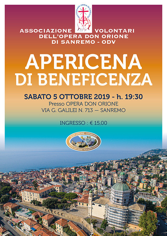 Un centinaio di persone ha accolto l'invito dell'Associazione Volontari dell'Opera don Orione di Sanremo che, sabato scorso, presso il Piccolo Cottolengo Don Orione di via Galilei, ha organizzato un apericena a sfondo solidale. Un ricco buffet con tanti stuzzichini preparati dagli stessi volontari, sangria e spritz per brindare, e una sottoscrizione finalizzata alla distribuzione di premi: questi gli ingredienti del successo della serata animata dai volontari.