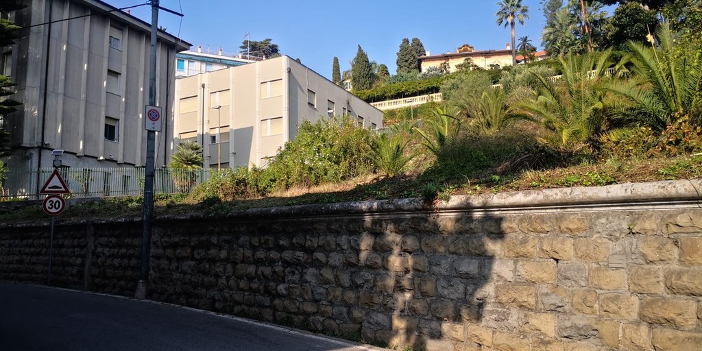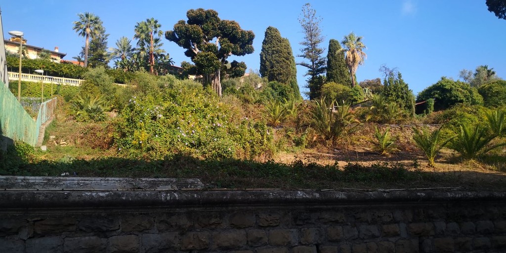 Piccolo incendio di un palmeto in corso Inglesi a Sanremo, poco sopra la caserma di Villa Giulia, dove ha sede la Compagnia dei Carabinieri della città dei fiori.